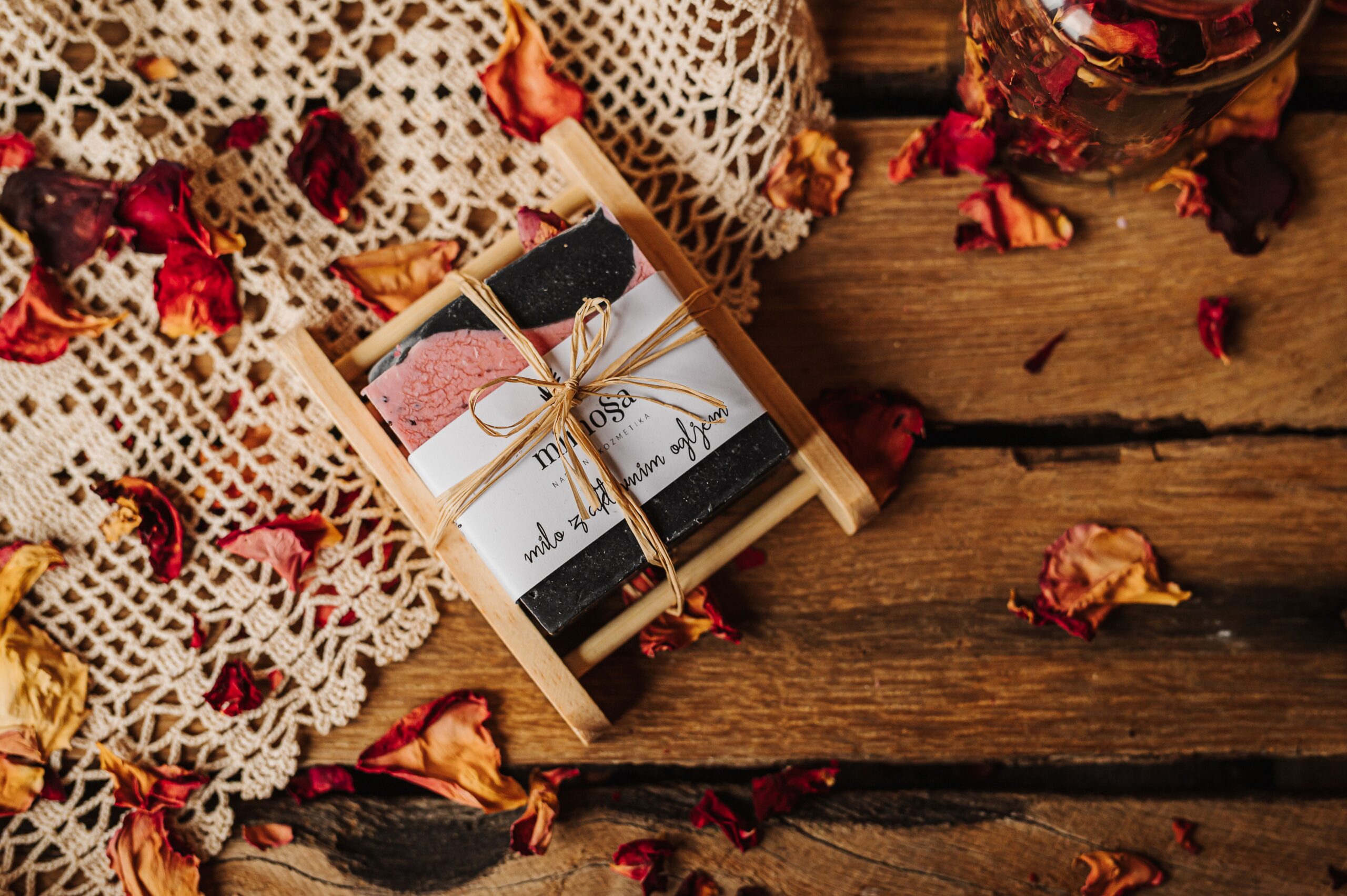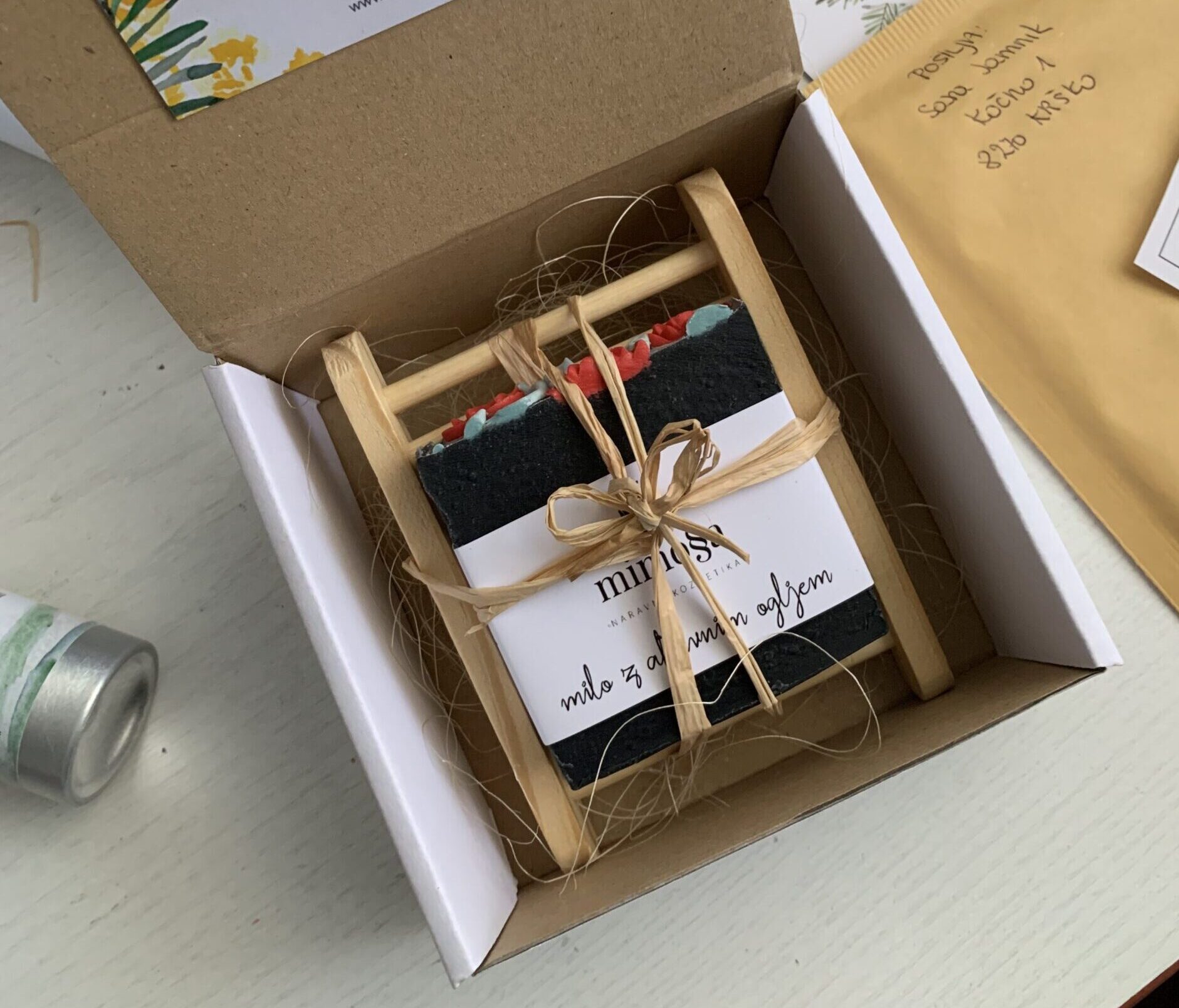 Cuando quieras regalar un jabón artesanal y quieres facilitar el uso correcto con un jabonera de madera que permite la aireación y el drenaje necesario, este es el conjunto perfecto.